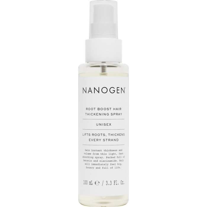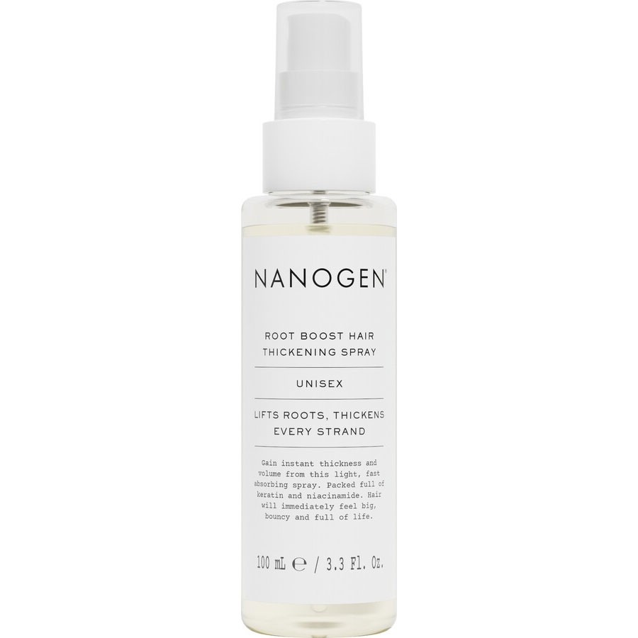 Formuła Nanogen Root Boost zawiera zarówno keratynę, kofeinę, jak i niacynę, które chronią włosy i pielęgnują skórę głowy. Zawarte w Nanogen Root Boost polimery oraz naturalna sól morska unoszą włosy już od nasady, natomiast peptydy regenerują naskórek.